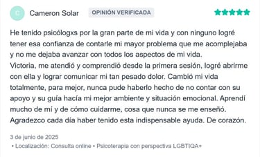 La primera sesión tiene por objetivo conocernos y ver si soy la persona adecuada para ayudarte en tu situación actual, además de resolver tus dudas respecto a mí, la psicoterapia, el enfoque desde el cuál trabajo y el en cuadre de como proceder.